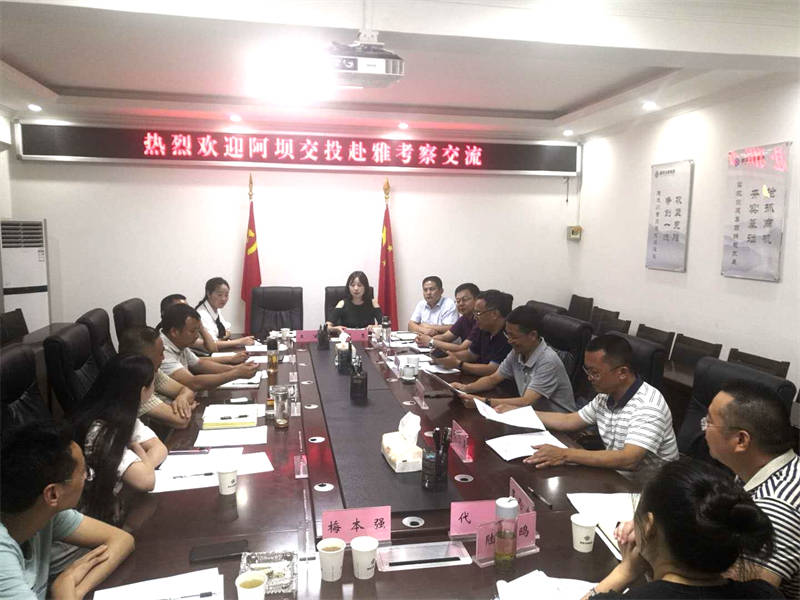 8月11日至12日,四川阿壩交通建設(shè)投資有限責(zé)任公司黨委書記、董事長李毅,黨委副書記、總經(jīng)理詹永康率隊到雅安考察交流交通建設(shè)相關(guān)事宜。雅安市交通運輸局黨組書記、局長余云峰,黨組成員、副局長趙飛勇;雅安交建集團黨委書記、董事長漆家華,黨委副書記、總經(jīng)理羅倫全等先后陪同考察、座談交流。