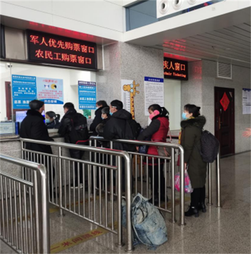 二是設(shè)立專門購票窗口。設(shè)立專門的農(nóng)民工購票窗口,安排車站工作人員在售票窗口引導(dǎo)和幫助農(nóng)民工朋友使用“微信購票”、“自助售票機(jī)購票”、“電子客票”等便捷綠色功能購票乘車。