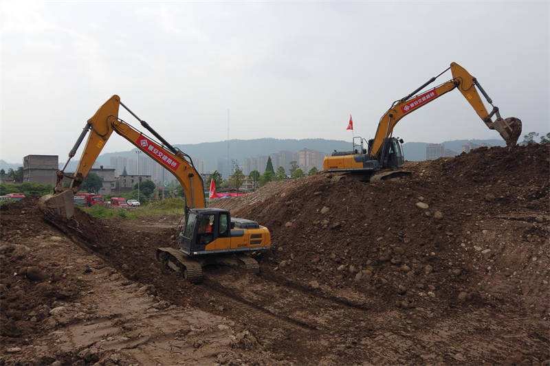 演習模擬了四川突發(fā)7.5級地震,災區(qū)房屋倒塌損毀嚴重,造成大量人員被壓被困,當?shù)仉娏Α⑼ㄐ、道路、橋梁部分中斷。交建路橋鐵軍以抗震救災全流程、全要素為主線,按照統(tǒng)一指揮、綜合協(xié)調、分級負責、屬地為主的原則,在指揮部的統(tǒng)一調度下,派出21名救援人員,出動挖掘機5臺、裝載機1臺,緊急實施道路搶修保通、架設水面浮橋等工作,圓滿完成基礎設施搶修和道路搶通科目演習任務。