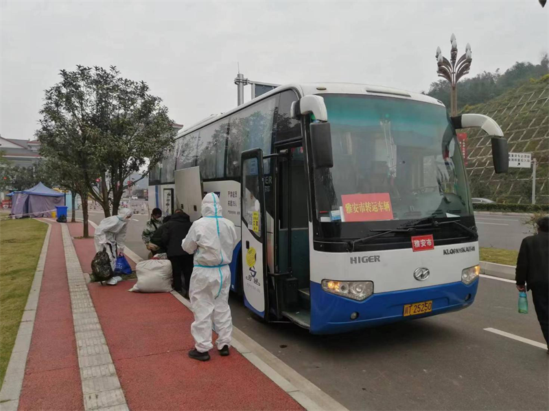 受疫情影響我省大量務工人員滯留西藏、新疆,四川省為解決我省經(jīng)商務工人員返鄉(xiāng)需求主動對接兩地開行四川返鄉(xiāng)專列,按照疫情防控要求在專列開行期間抵蓉后,由各市州調(diào)派運力采用接力閉環(huán)運輸?shù)姆绞綄⒎掂l(xiāng)人員納入疫情防控管理。市交通局安排蜀通公司負責我市外省返雅務工人員的閉環(huán)轉(zhuǎn)運工作,接到任務后公司馬上制定了轉(zhuǎn)運方案和安全、防疫保障措施,成立了工作專班確保該階段性工作順利完成。