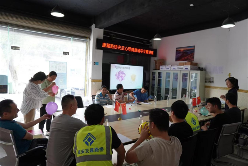 “6.1”蘆山地震發(fā)生后,路橋公司寶興項目部員工親身經歷了全過程,第一時間組織人力、物力參加人員道路搶通保通和生產自救,突發(fā)地震災害對職工造成不同程度的心理沖擊;顒又校罄蠋熍c員工們歡聚一堂,以小游戲與員工互動調整大家心理狀態(tài),圍繞員工心理健康常識、常見心理困擾及應對策略和如何緩解工作壓力、控制個人情緒、提高心理健康水平等內容,評估員工心理健康狀況,剖析員工情緒現狀及負面情緒產生的原因,幫助梳理解決方案。