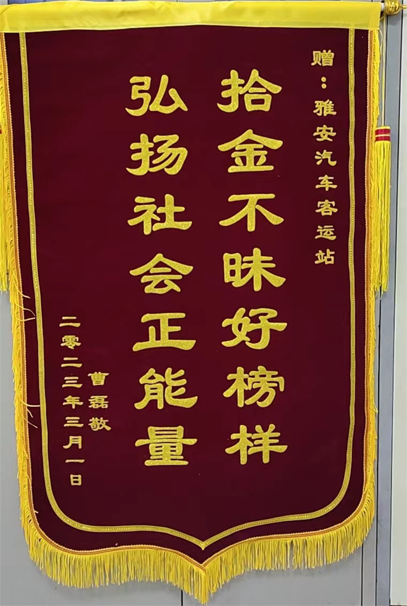 經(jīng)過(guò)幾日的多方式查詢失主信息,終于電話聯(lián)系到遠(yuǎn)在河北省的曹磊先生,在核實(shí)失主的身份和包內(nèi)物品信息無(wú)誤后,車(chē)站通過(guò)郵寄錢(qián)包及卡、微信轉(zhuǎn)賬現(xiàn)金的方式歸還失主。面對(duì)失而復(fù)得的錢(qián)包,曹先生對(duì)拾到錢(qián)包的例檢員劉孝康和車(chē)站領(lǐng)導(dǎo)表達(dá)了誠(chéng)摯的謝意。3月6 日車(chē)站收到曹磊先生郵寄的“拾金不昧好榜樣 弘揚(yáng)社會(huì)正能量”的錦旗。