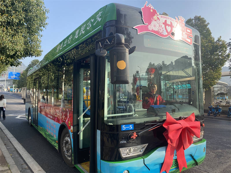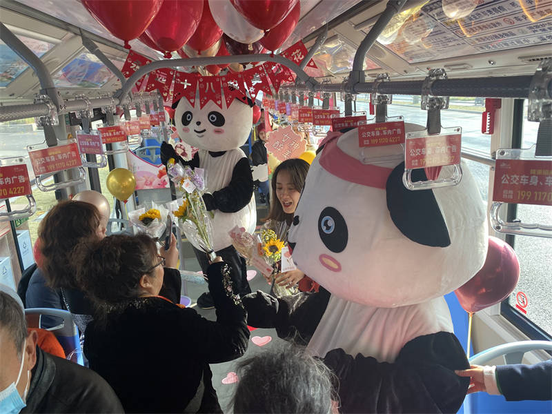上午9點10分,精心打造的5路公交車從雅安市公交總站臺出發(fā),該車車身“穿戴”上粉色的蝴蝶結(jié),“頭戴”女神號“皇冠”,車身外印著“帶著你的鋒芒 做自己的女王”“你活得漂亮 世界才溫柔”等節(jié)日祝福標語,車廂內(nèi)“甜美粉”元素以及人形玩偶大熊貓“雅雅”“安安”送上的鮮花和“女神節(jié)快樂!”深深祝福,同時為女性乘客提供“女神相框”拍照打卡點,讓每一位女乘客感受到了節(jié)日的溫馨、浪漫。