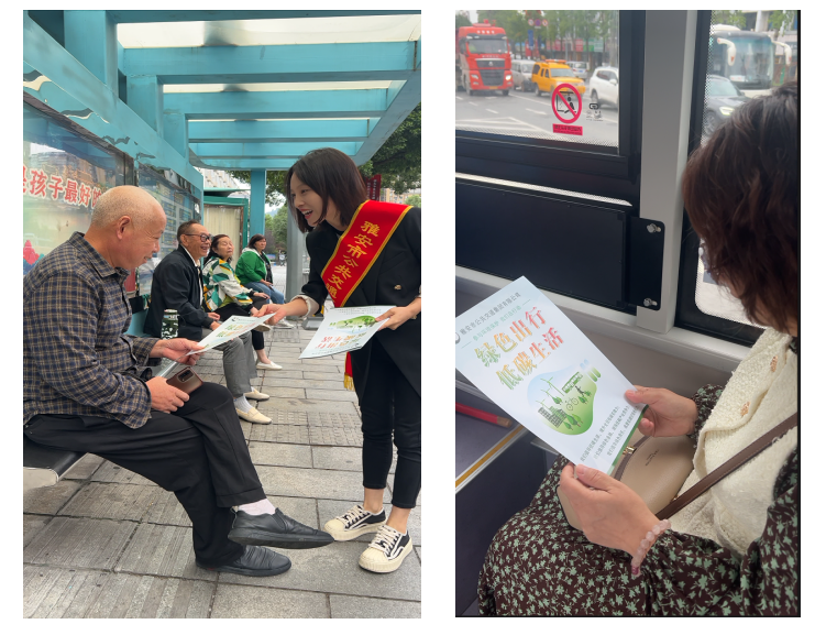 活動(dòng)期間,公交集團(tuán)積極組織干部職工開(kāi)展“綠色出行公益宣傳”“倡導(dǎo)綠色出行 促進(jìn)生態(tài)文明”“綠色出行 你我同行”等一系列主題宣傳活動(dòng),并組織志愿者深入人員集中的公交站臺(tái)、主要街道、重要路口、社區(qū)向市民發(fā)放“綠色出行,低碳生活”宣傳手冊(cè),科普“減碳留氧”20項(xiàng)低碳生活方式,講解文明綠色出行、節(jié)能降耗的意義及公交惠民、便民舉措,動(dòng)員市民朋友主動(dòng)參與低碳行動(dòng),樹(shù)立公交優(yōu)先意識(shí)理念,積極向身邊人宣傳“優(yōu)選公交、綠色、文明出行”的意義和方式,帶動(dòng)更多的人參與進(jìn)來(lái)。