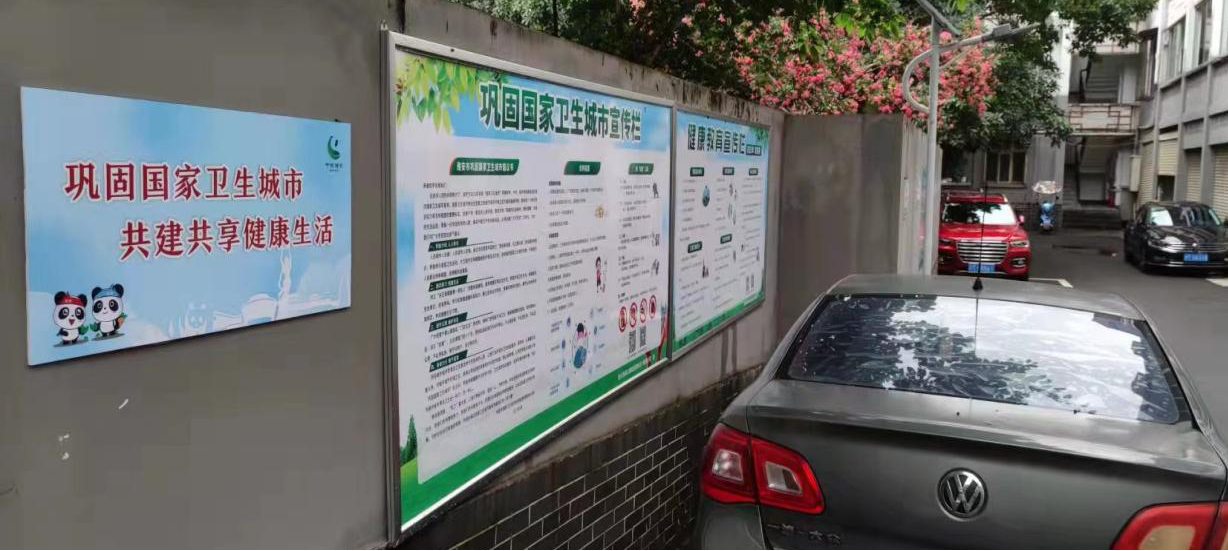二是加強(qiáng)聯(lián)包幫大院的管理。在社區(qū)協(xié)助下院內(nèi)增添鼠毒餌盒,每天清理大院內(nèi)及門口衛(wèi)生,嚴(yán)格按照要求,做好“門前三包”工作。增設(shè)消防安全設(shè)施,保障居民消防安全。在院墻上張貼鞏固國(guó)家衛(wèi)生城市標(biāo)語、健康知識(shí)、禁煙標(biāo)識(shí)并及時(shí)更新,為國(guó)衛(wèi)復(fù)審工作營(yíng)造良好氛圍。