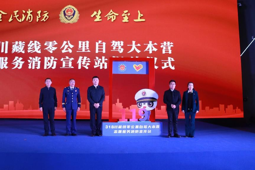 啟動(dòng)儀式上,與會(huì)領(lǐng)導(dǎo)為我市第18個(gè)消防志愿服務(wù)宣傳站——318川藏線(xiàn)零公里自駕大本營(yíng)消防志愿服務(wù)宣傳站揭牌,該站的建立開(kāi)啟了地標(biāo)打卡地消防宣傳工作新篇章,將更好地為群眾開(kāi)展消防安全培訓(xùn)服務(wù)、傳播消防安全知識(shí)。