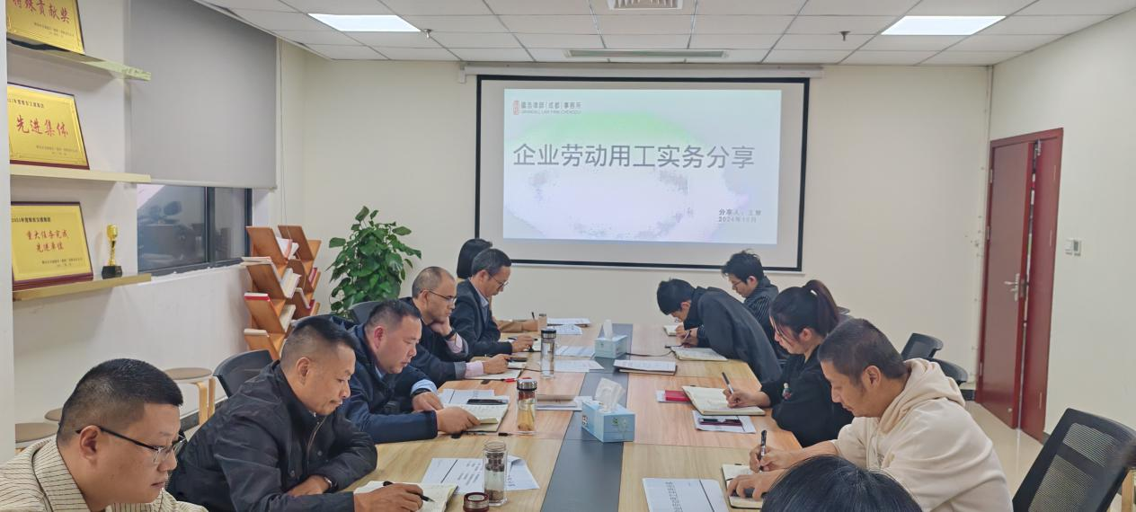 為進(jìn)一步加強(qiáng)勞動(dòng)用工實(shí)務(wù)操作,提高解決勞動(dòng)爭(zhēng)議的能力和技巧,10月31日,項(xiàng)管公司邀請(qǐng)成都國浩律師事務(wù)所王慧律師開展了勞動(dòng)用工實(shí)務(wù)培訓(xùn)活動(dòng),公司領(lǐng)導(dǎo)班子、中層及相關(guān)經(jīng)辦人員約20人參加培訓(xùn)。