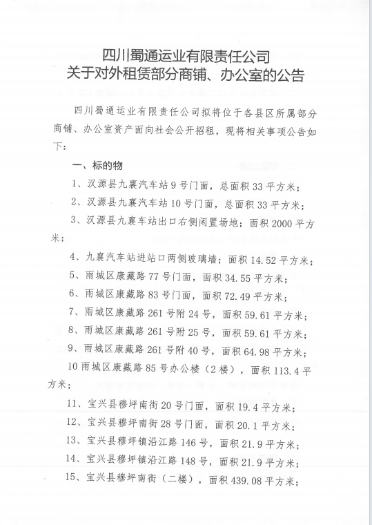 ËÄ´¨Êñͨß\˜I(y¨¨)ÓÐÏÞØŸ(z¨¦)Èι«Ë¾êP(gu¨¡n)ÓÚŒ¦Íâ×âÙU²¿·ÖéTÃæ¡¢Þk¹«ÊÒÙY®a(ch¨£n)µÄ¹«¸æ¸½¼þ