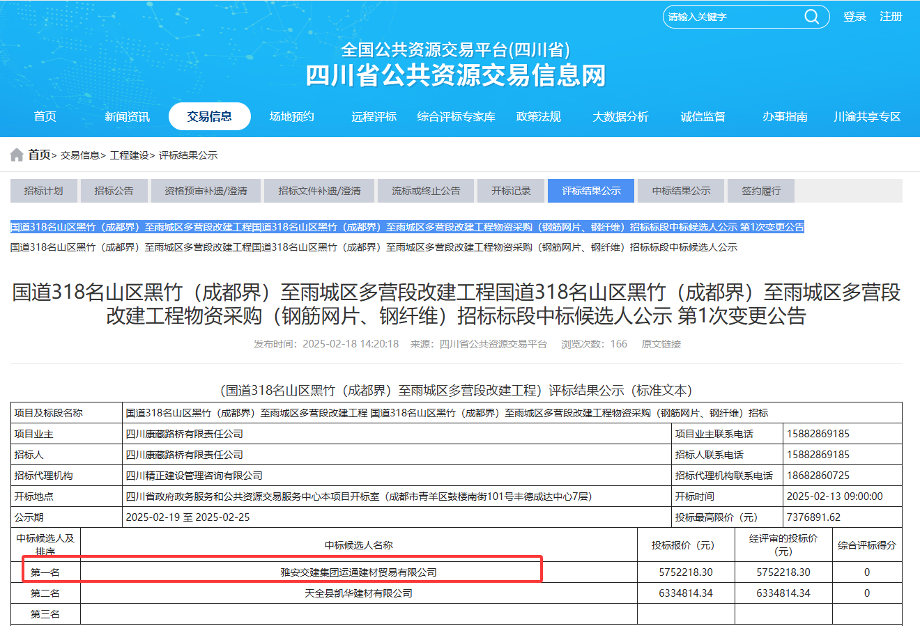 新年伊始,雅安交建集團建材公司憑借過硬實力和平臺企業(yè)優(yōu)勢,在重點基建項目招標中連獲突破,成功中標國道318名山區(qū)黑竹(成都界)至雨城區(qū)多營段改建工程兩大核心物資供應,合同總額突破2100萬元,為2025年度經營目標達成奠定堅實基礎。