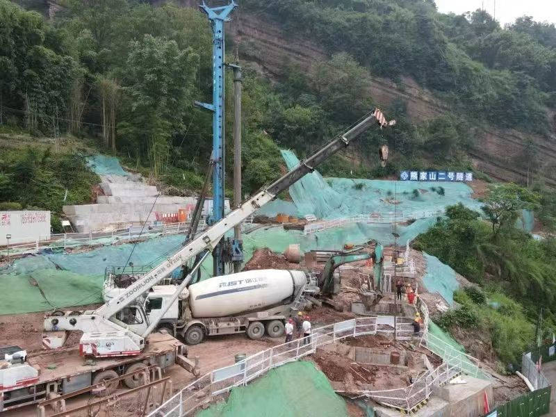 “咚咚咚……”在雨城區(qū)多營鎮(zhèn)五營村熊家山二號隧道出口端空地上,旋挖鉆機開足馬力,朝著地層深處掘進,不斷發(fā)出富有節(jié)奏的聲響。“每個樁基有二十多米深!眹318線名山區(qū)黑竹(成都界)至雨城區(qū)多營段改建工程項目副經(jīng)理林洲,每天都要到各施工點位查看進度。他說,熊家山二號隧道附近山體為順層帶,易產(chǎn)生滑坡,進洞施工前需要先在洞外打抗滑樁,以確保施工安全,目前還在開展剩下3根抗滑樁的施工。