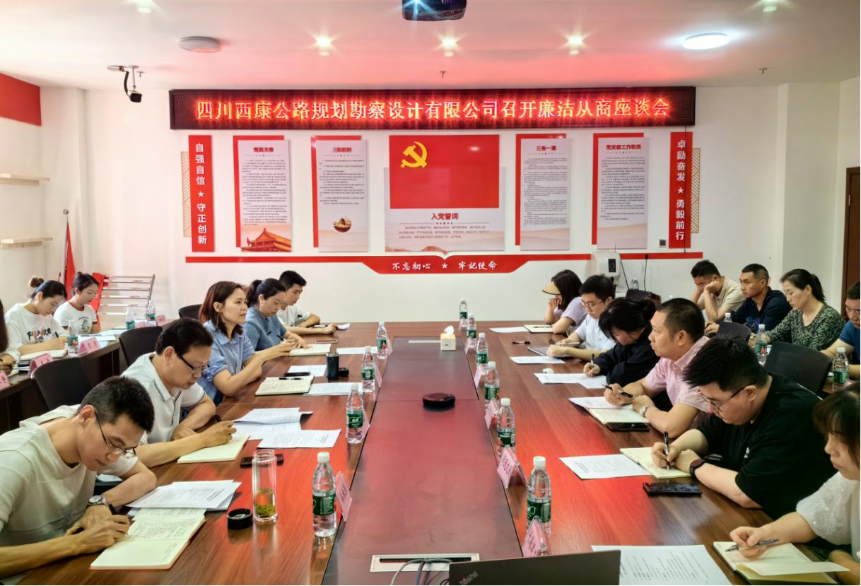 為弘揚(yáng)清風(fēng)正氣,共建“親清”統(tǒng)一的企商關(guān)系,共筑廉潔自律反腐防線,營(yíng)造更加優(yōu)良的發(fā)展環(huán)境。5月24日,雅安交建集團(tuán)西康設(shè)計(jì)公司召開廉潔從商座談會(huì),22家合作商、供應(yīng)商應(yīng)邀參加,集團(tuán)黨委委員、副總經(jīng)理丁春出席會(huì)議并作重要講話,公司黨支部書記、執(zhí)行董事何銘新主持會(huì)議,公司全體中層干部參加會(huì)議。