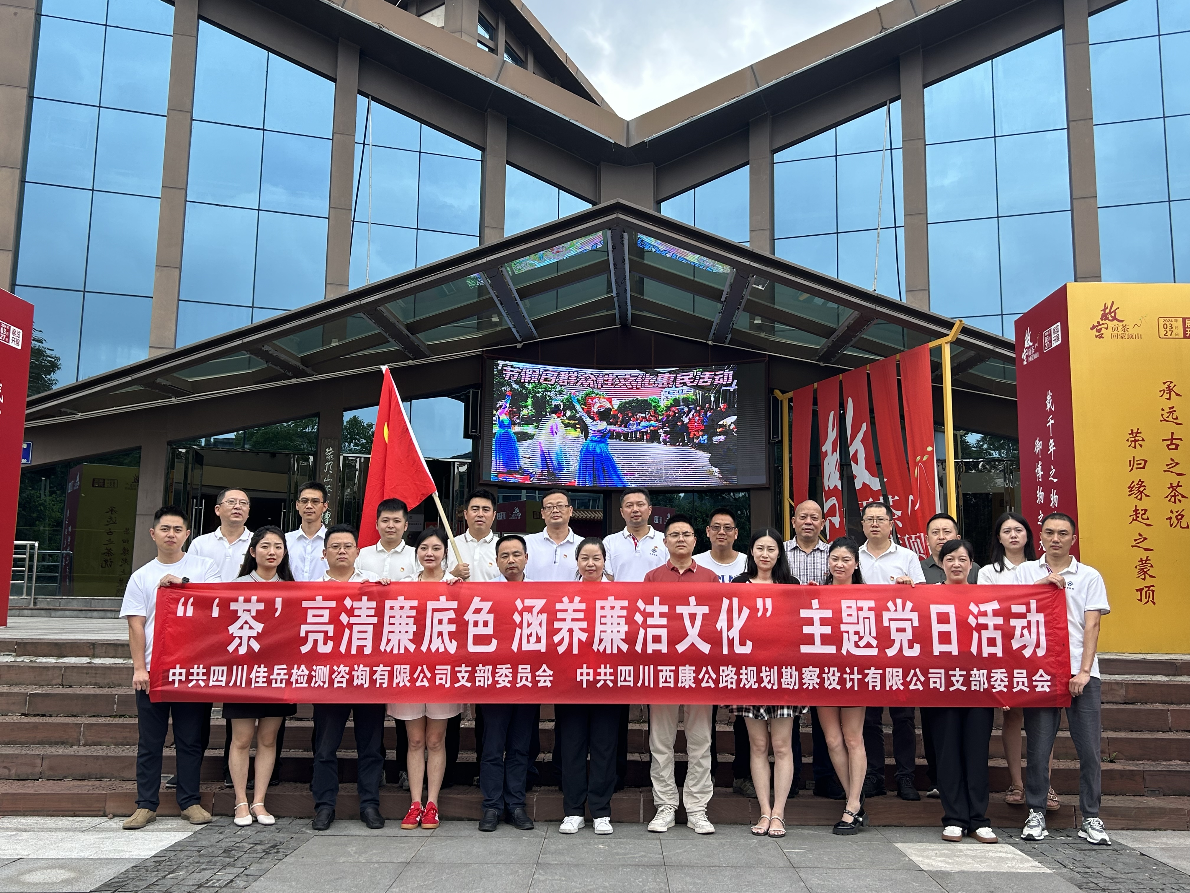為持續(xù)推動黨紀(jì)學(xué)習(xí)教育走深走實,鞭策黨員干部把學(xué)習(xí)的成效轉(zhuǎn)化為干部履職的實效,7月16日,佳岳公司黨支部聯(lián)合西康設(shè)計公司黨支部赴名山區(qū)茶史博物館開展“‘茶’亮清廉底色 涵養(yǎng)廉潔文化”主題黨日活動。