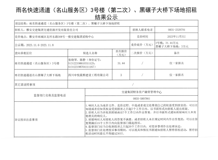 ÑŰ²½»½¨¼¯ˆF(tu¨¢n)½»Í¨ÙYÔ´é_°l(f¨¡)ÓÐÏÞØŸ(z¨¦)Èι«Ë¾ÓêÃû¿ìËÙͨµÀ£¨Ãûɽ·þ„Õ(w¨´)…^(q¨±)£©3Ì–(h¨¤o)˜Ç£¨µÚ¶þ´Î£©ºÚÄë×Ó´ó˜òψö(ch¨£ng)µØÕÐ×â½Y(ji¨¦)¹û¹«Ê¾