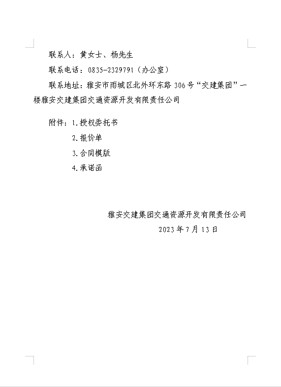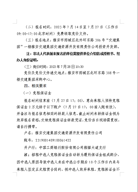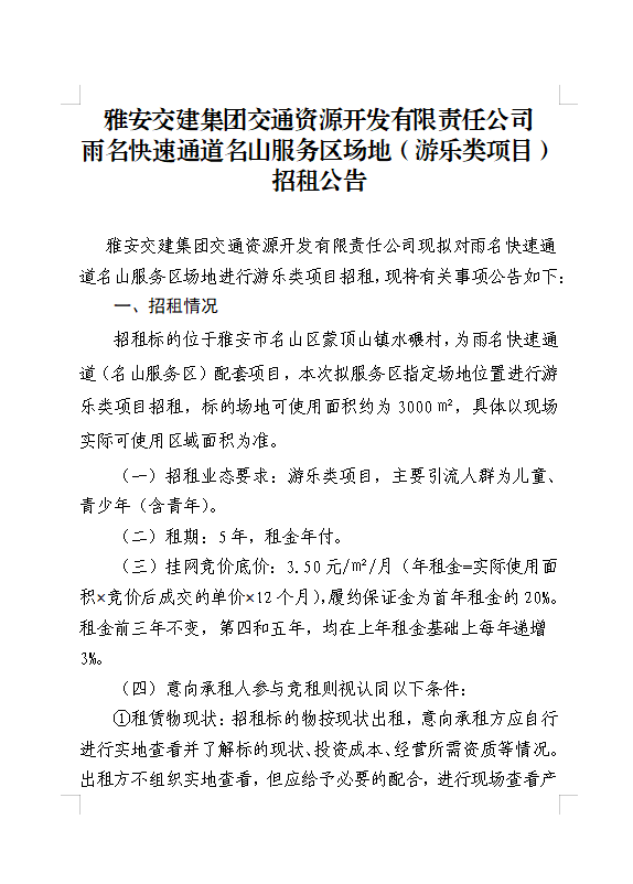 雅安交建集團交通資源開發(fā)有限責任公司雨名快速通道名山服務區(qū)場地(游樂類項目)招租公告附件
