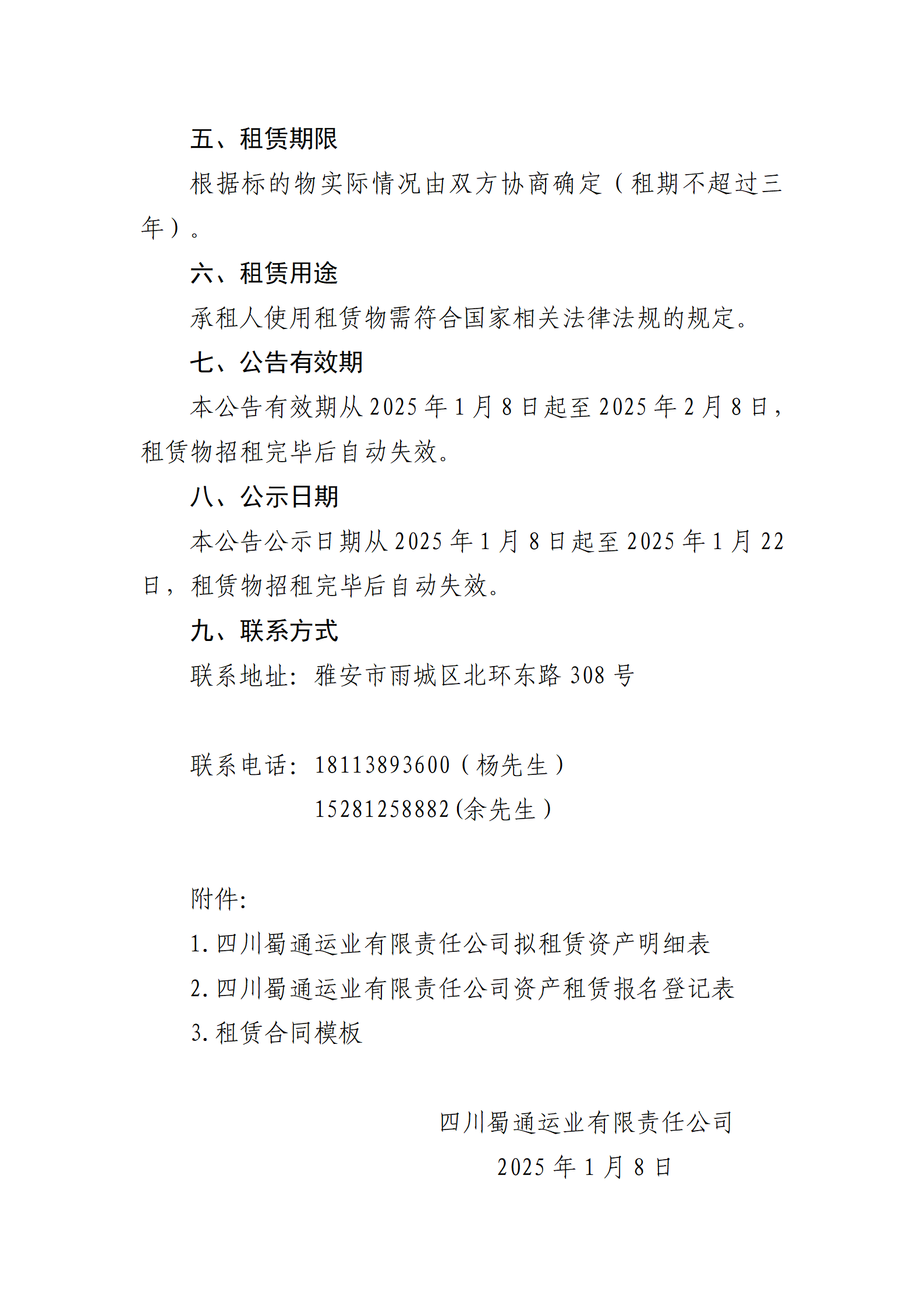 四川蜀通運業(yè)有限責任公司 關(guān)于寶興縣沿江路140號、穆坪南街16號、18號三間商鋪進行掛網(wǎng)招租的公告