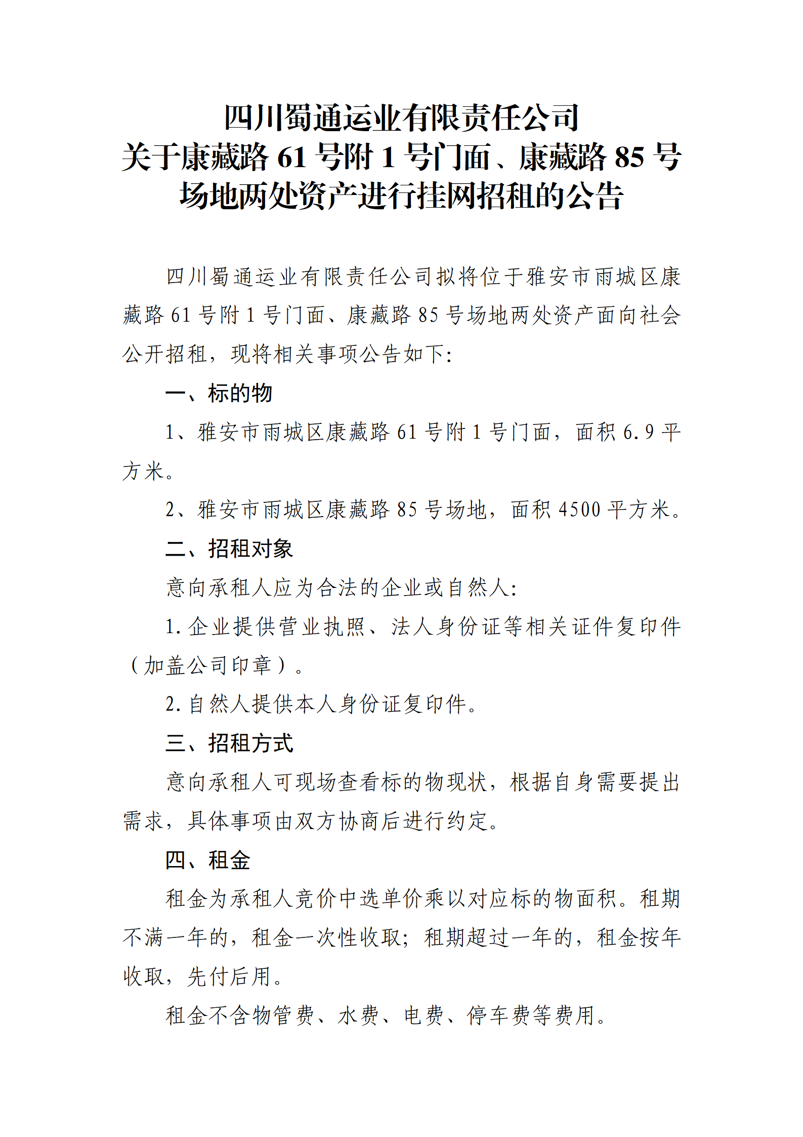 ËÄ´¨Êñͨß\˜I(y¨¨)ÓÐÏÞØŸ(z¨¦)Èι«Ë¾ êP(gu¨¡n)ÓÚ¿µ²ØÂ·61Ì–¸½1Ì–éTÃæ¡¢¿µ²ØÂ·85Ì–ˆöµØƒÉÌŽÙY®a(ch¨£n)ßMÐÐ’ì¾W(w¨£ng)ÕÐ×âµÄ¹«¸æ