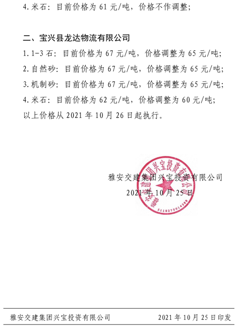 ÑŰ²½»½¨¼¯ˆFµ¤Ê¯¹«Ë¾êP(gu¨¡n)ÓÚÕ{(di¨¤o)Õû³ÉÆ·¹ÇÁϼ°ïL(f¨¥ng)»¯µVʯÁÏäNÊÛƒr¸ñµÄ֪ͨ£¨2021.10.26£©
