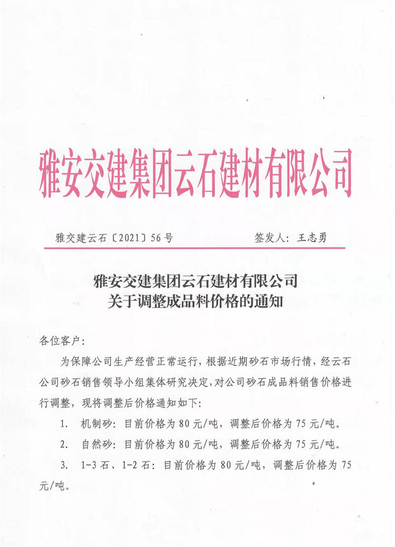 ÑŰ²½»½¨¼¯ˆFÔÆÊ¯¹«Ë¾êP(gu¨¡n)ÓÚÕ{(di¨¤o)Õû³ÉÆ·ÁÏäNÊÛƒr¸ñµÄ֪ͨ£¨2021.11.4£©