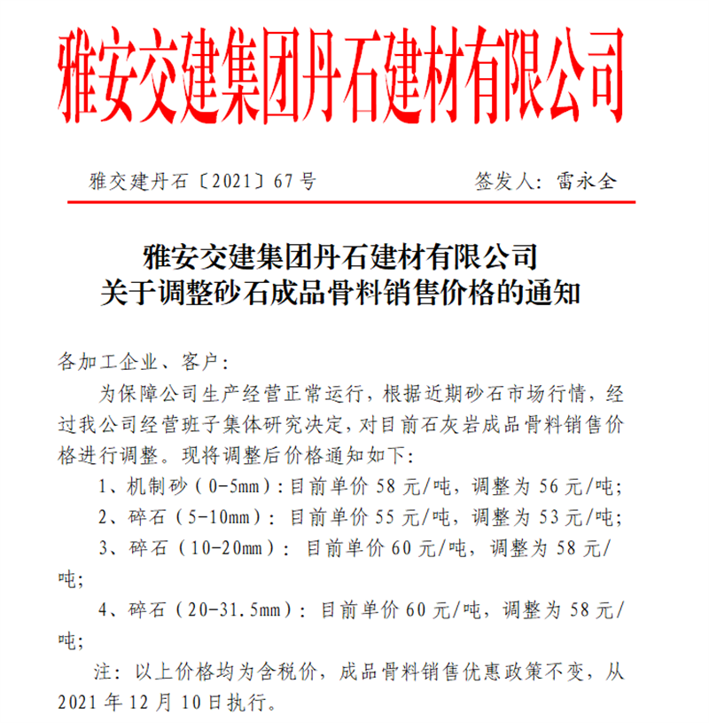 ÑŰ²½»½¨¼¯ˆFµ¤Ê¯¹«Ë¾êPÓÚÕ{Õûɰʯ³ÉÆ·¹ÇÁÏäNÊÛƒr¸ñµÄ֪ͨ£¨2021.12.9£©