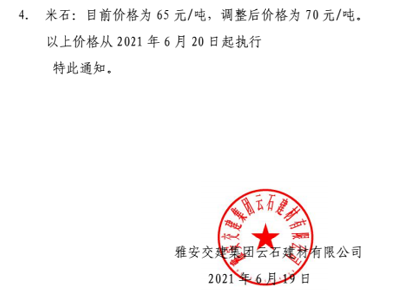 ÑŰ²½»½¨¼¯ˆF(tu¨¢n)ÔÆÊ¯¹«Ë¾É°Ê¯¹ÇÁÏäNÊÛƒr(ji¨¤)¸ñÇé›r±í£¨2021.6.20£©