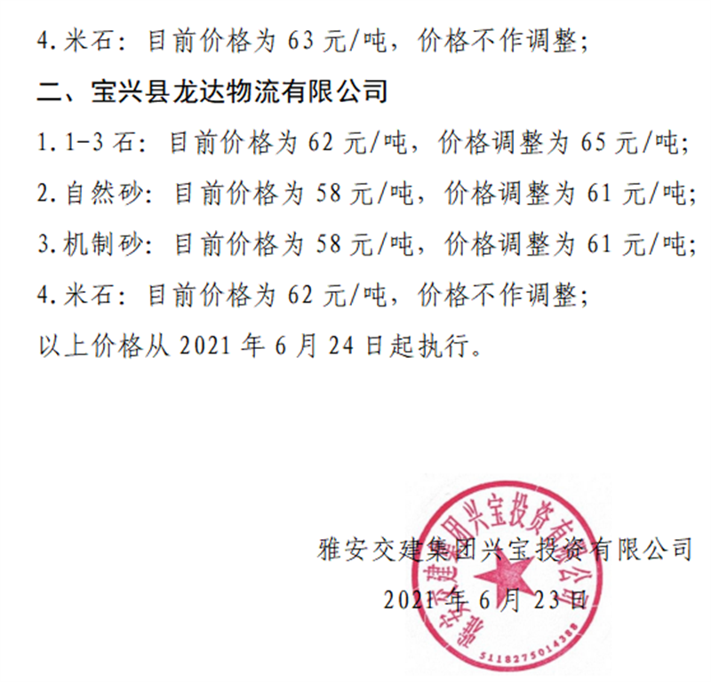 ÑŰ²½»½¨¼¯ˆF(tu¨¢n)ÔÆÊ¯¹«Ë¾É°Ê¯¹ÇÁÏäNÊÛƒr¸ñÇé›r±í£¨2021.6.24£©
