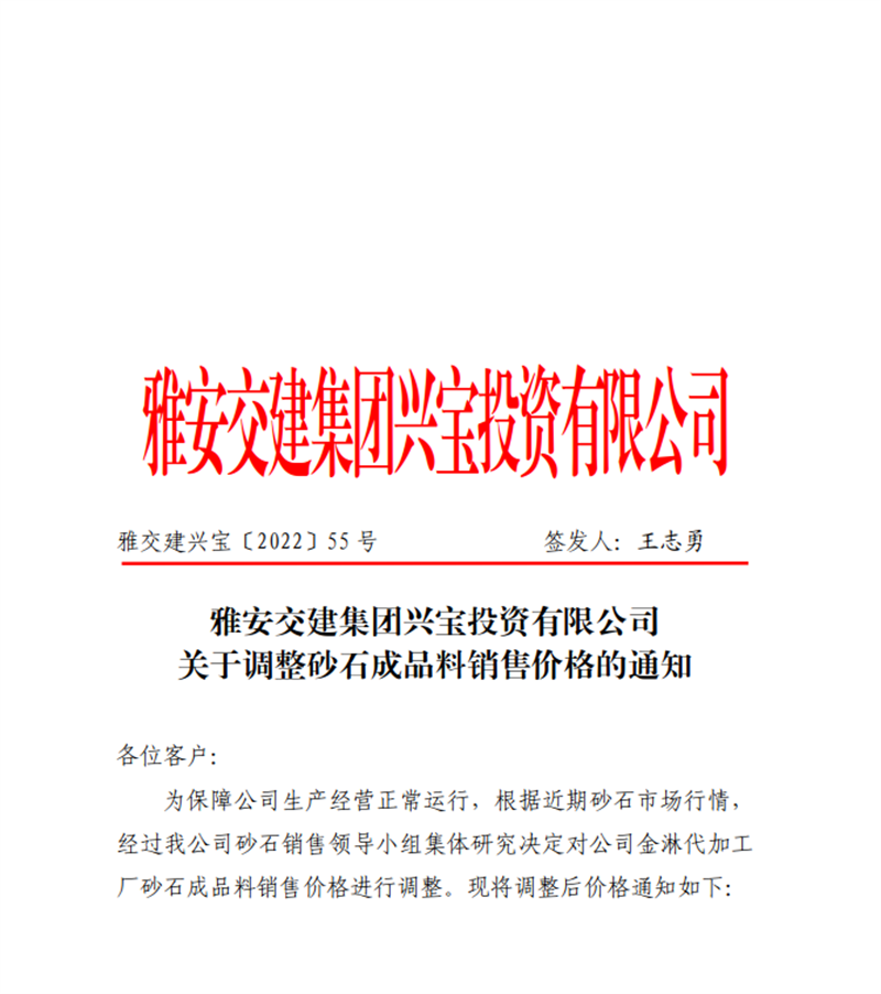 ÑŽ»½¨ÅdŒš¡²2022¡³55Ì–(h¨¤o) êP(gu¨¡n)ÓÚÕ{(di¨¤o)Õûɰʯ³ÉÆ·ÁÏäNÊÛƒr(ji¨¤)¸ñµÄ֪ͨ-11.5
