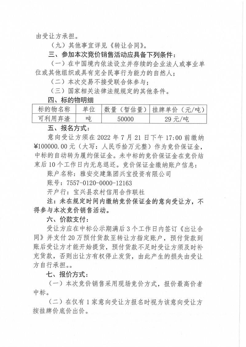 寶興縣靈關(guān)鎮(zhèn)代碑寺土地整理項(xiàng)目一批可利用棄渣競(jìng)價(jià)銷(xiāo)售公告7.18(5萬(wàn)噸)